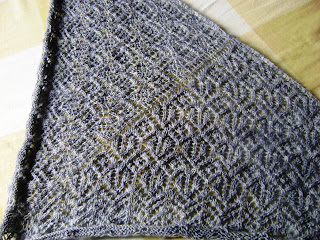 Quando vi estas compras da Marisa, eu notei um novelo azul Noblesse. Eu estou atrás deste fio desde que fiz este xale. Ele ficou macio, e sem falar que este fio é uma delícia para tricotar.