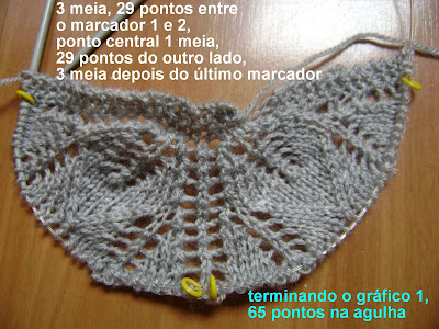 Begin shawl here – começo do xale aqui (os 3 primeiros quadradinhos serão sempre 3 meia no avesso e no direito)