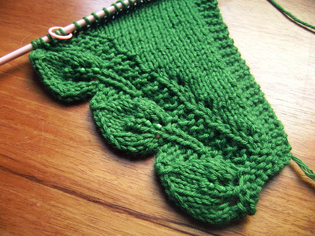 Carreira 9 (avesso): 12 tricô, laçada, 5 tricô
